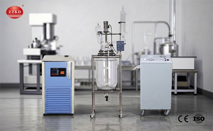 Jacketed glass reactor is designed with double-layer glass. The inner layer can be put into the reaction solvent for stirring and mixing reaction and filtering. The interlayer can be connected with different cold and heat sources (refrigerated liquid, hot water or hot oil) for cyclic heating or cooling reaction.